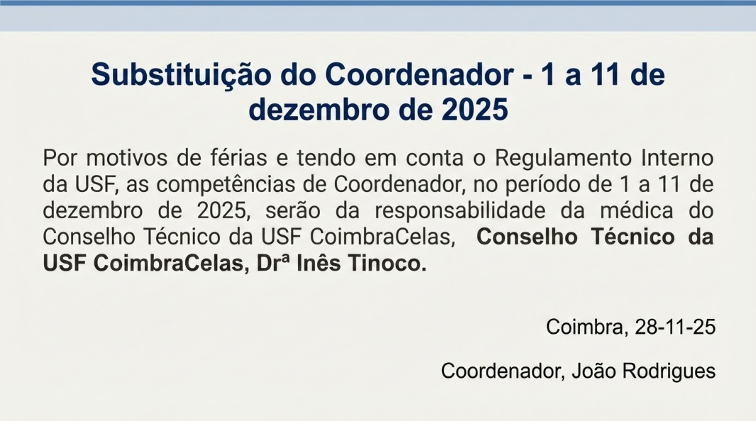 - Enf. Rodrigo Reis, 11/12/2025 e 12/12/2025 (depois das 16h00)